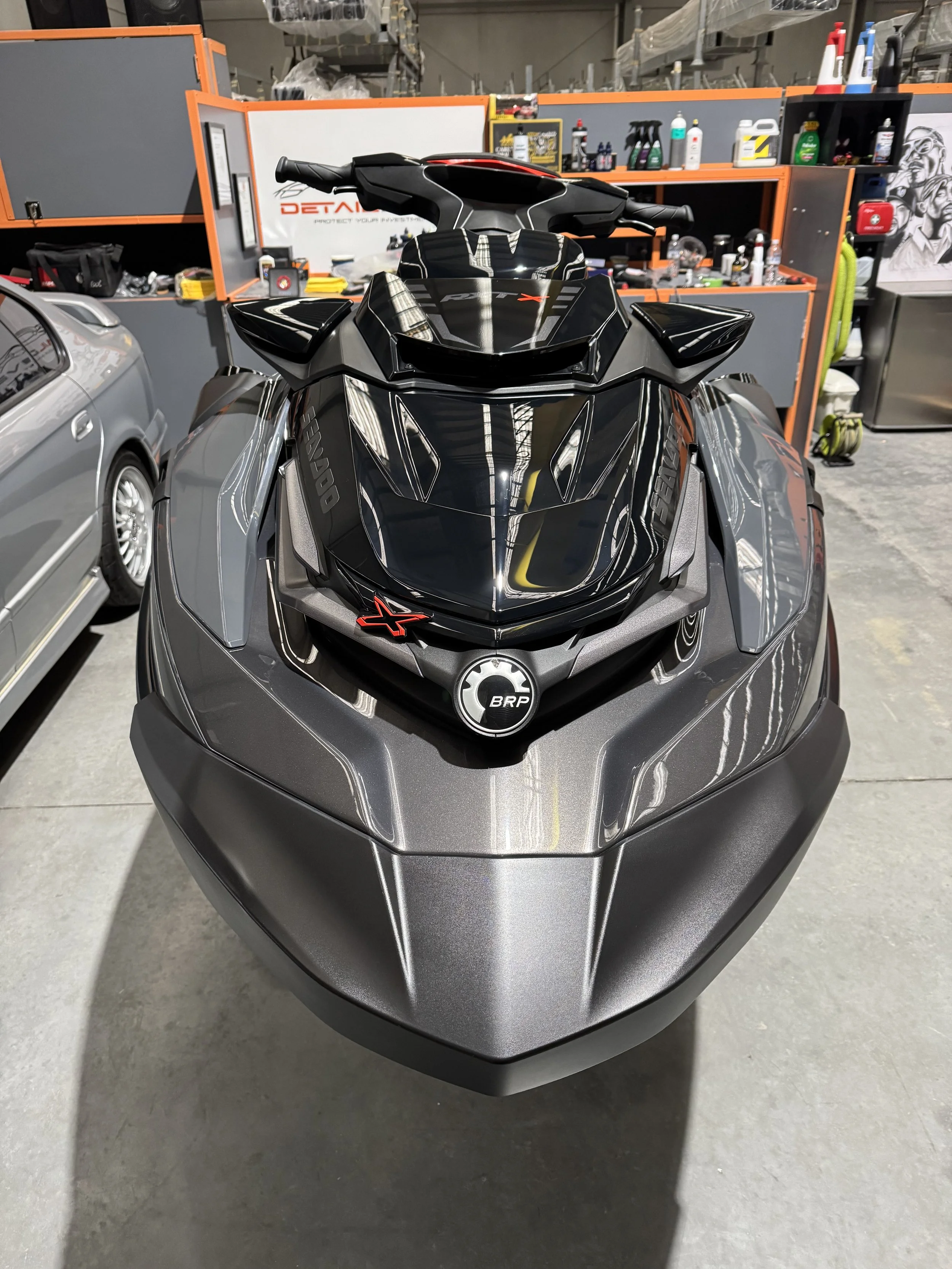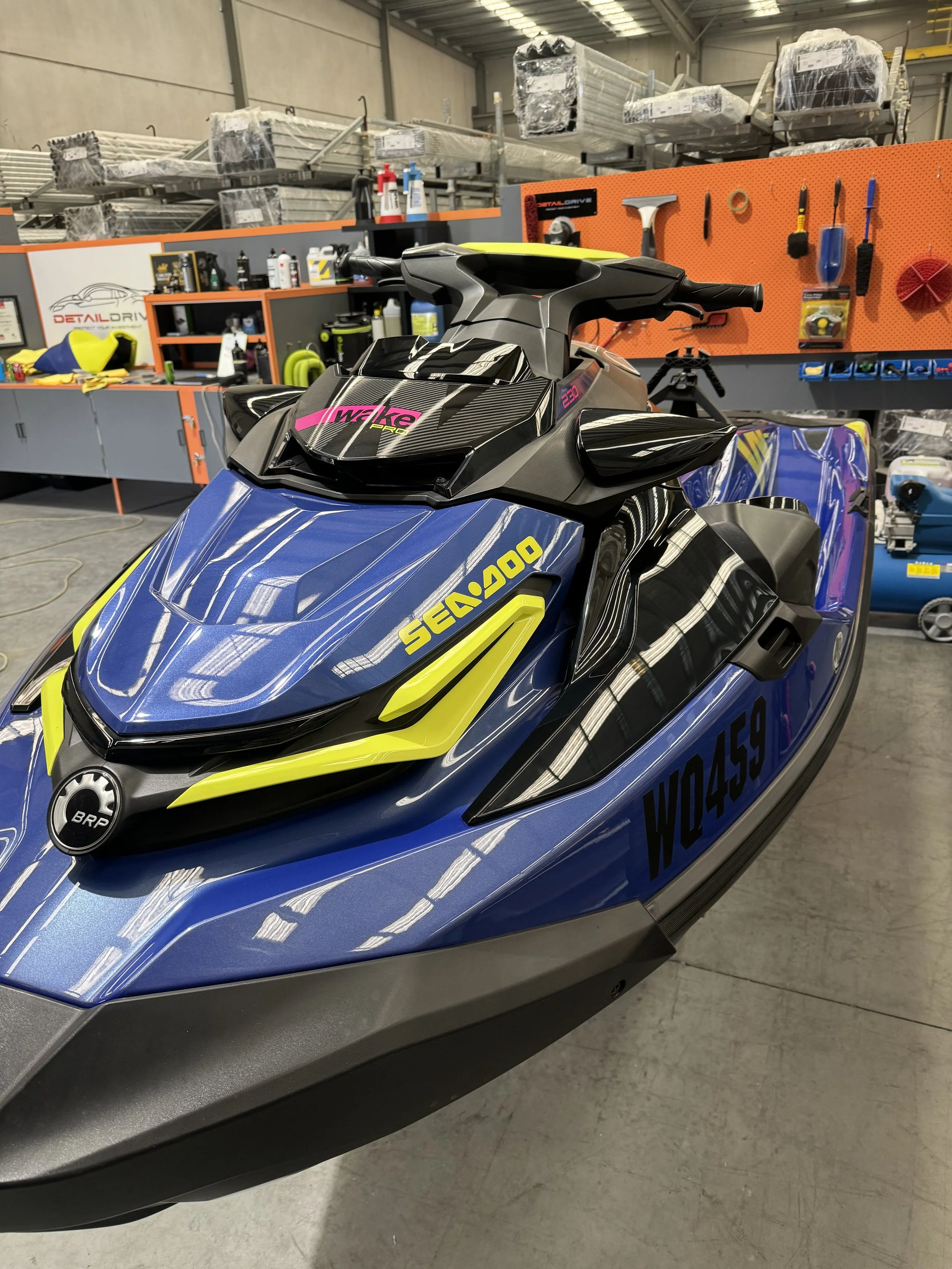 A ceramic-coated jet ski has a deep gloss and slick feel, often looking better than new.